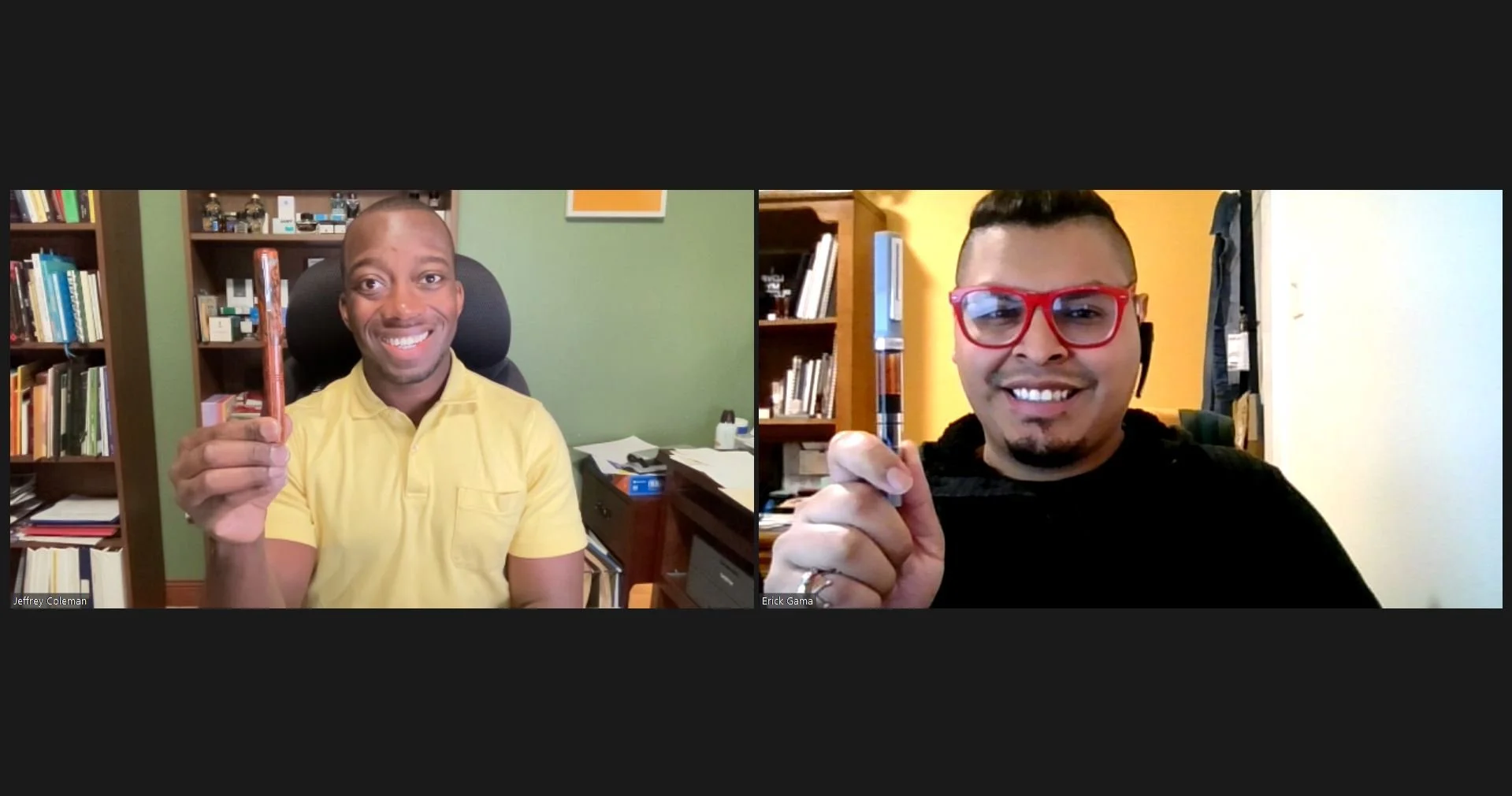 Erick y Jeffrey toman un macchiato antes de explorar varios lanzamientos.