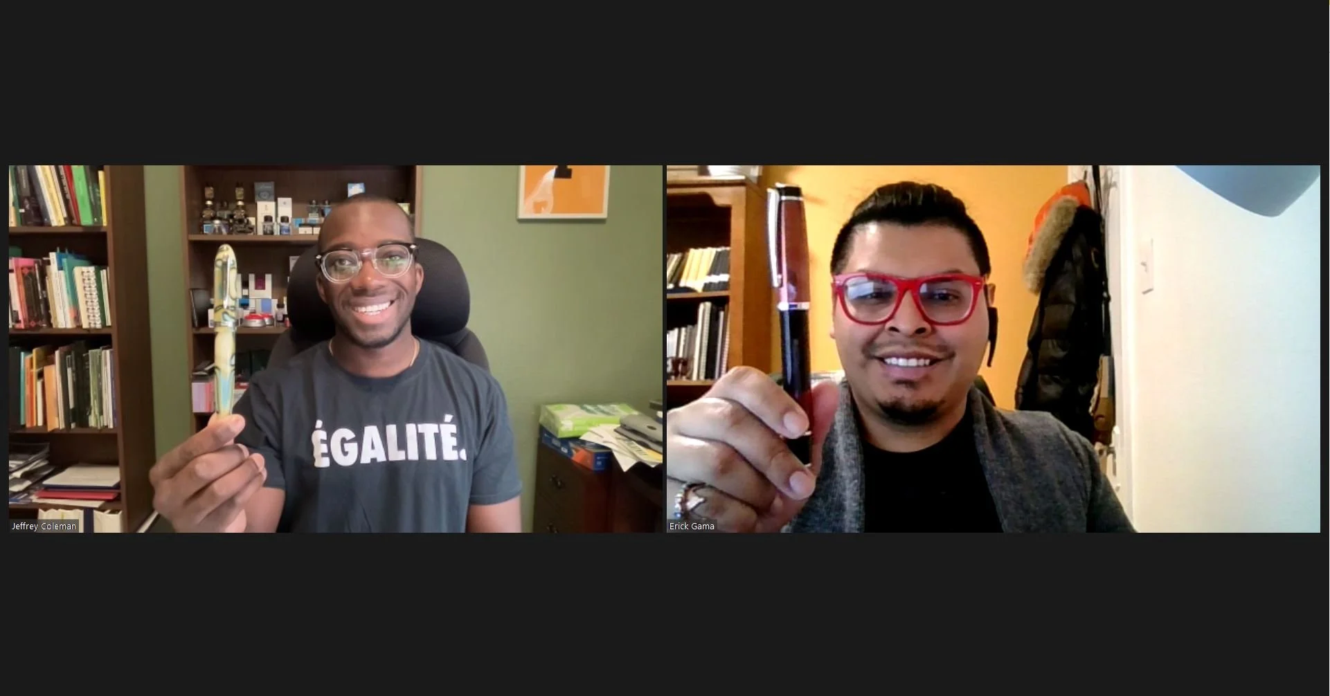Erick y Jeffrey discuten la posibilidad de tintas inspiradas por el pollo frito.
